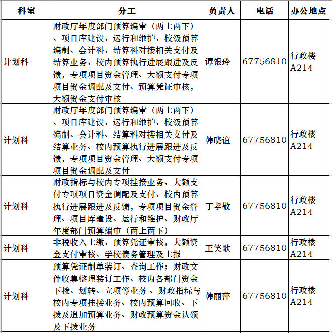 5.负责校内预算、省级专项财政性资金预算的下达、用款计划编制、预算执行控制。